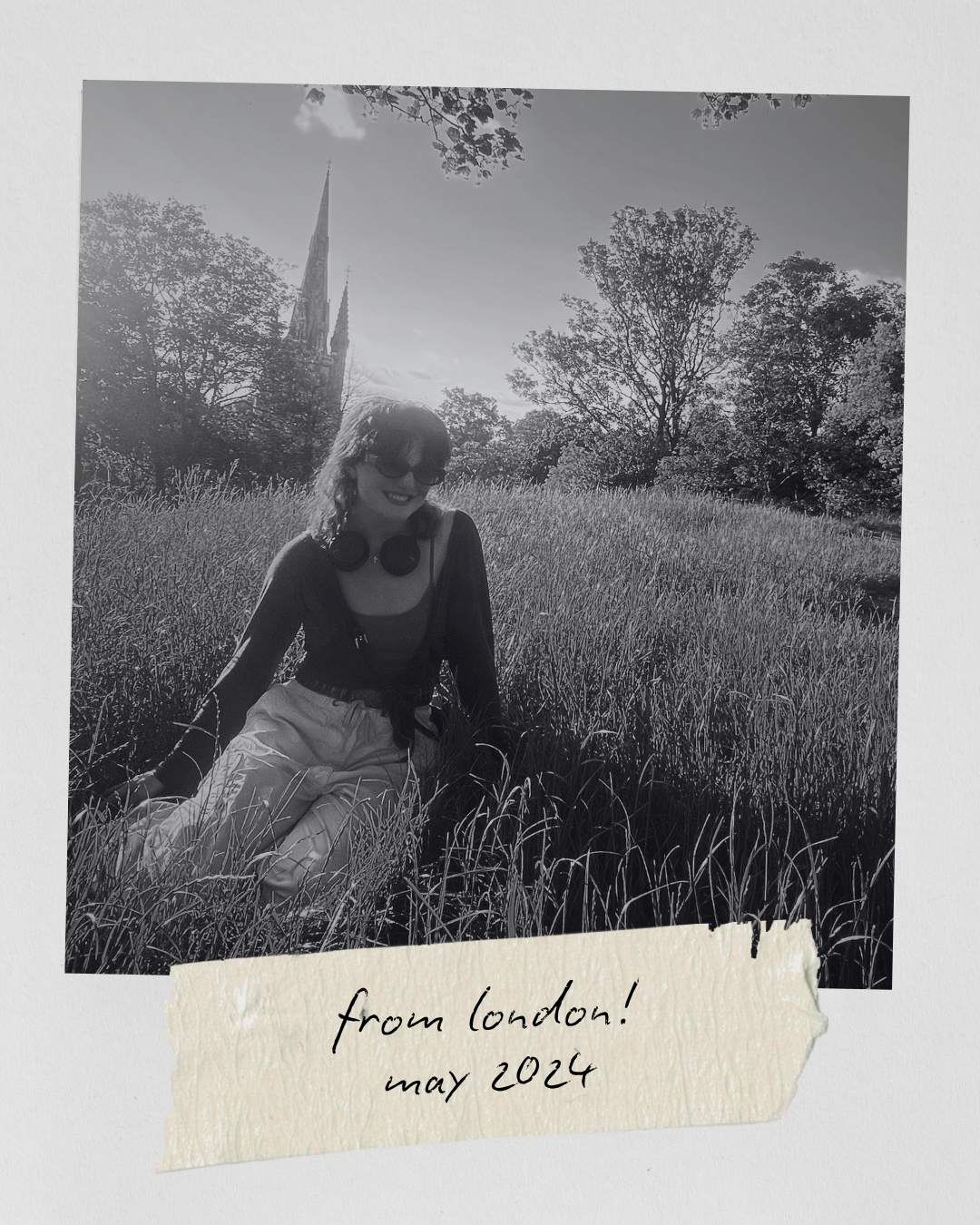 When I’m not designing, I love to go on runs outside, travel with my dad, go thrifting, take pictures of my friends with my digital camera, listen to new albums, and paint!